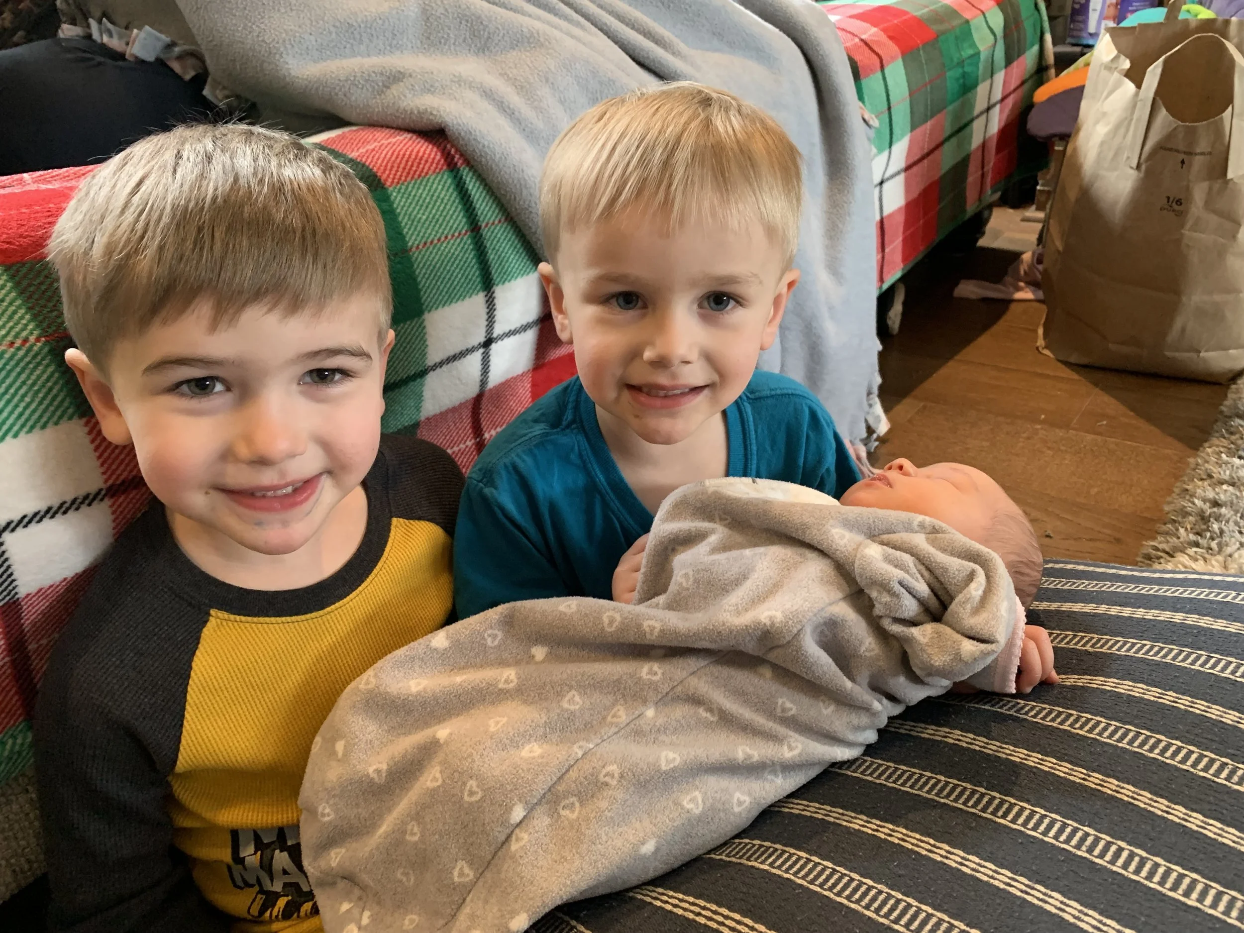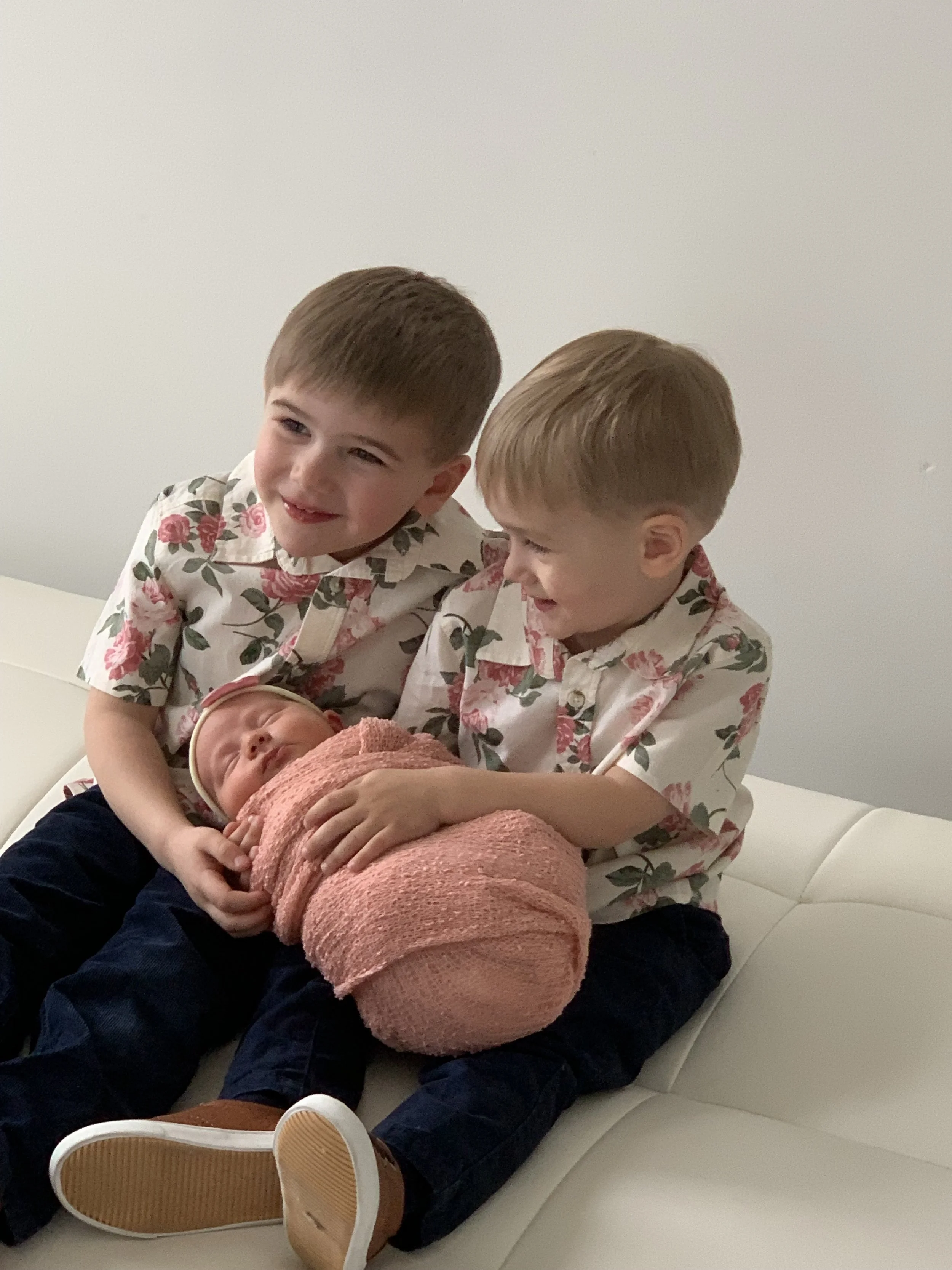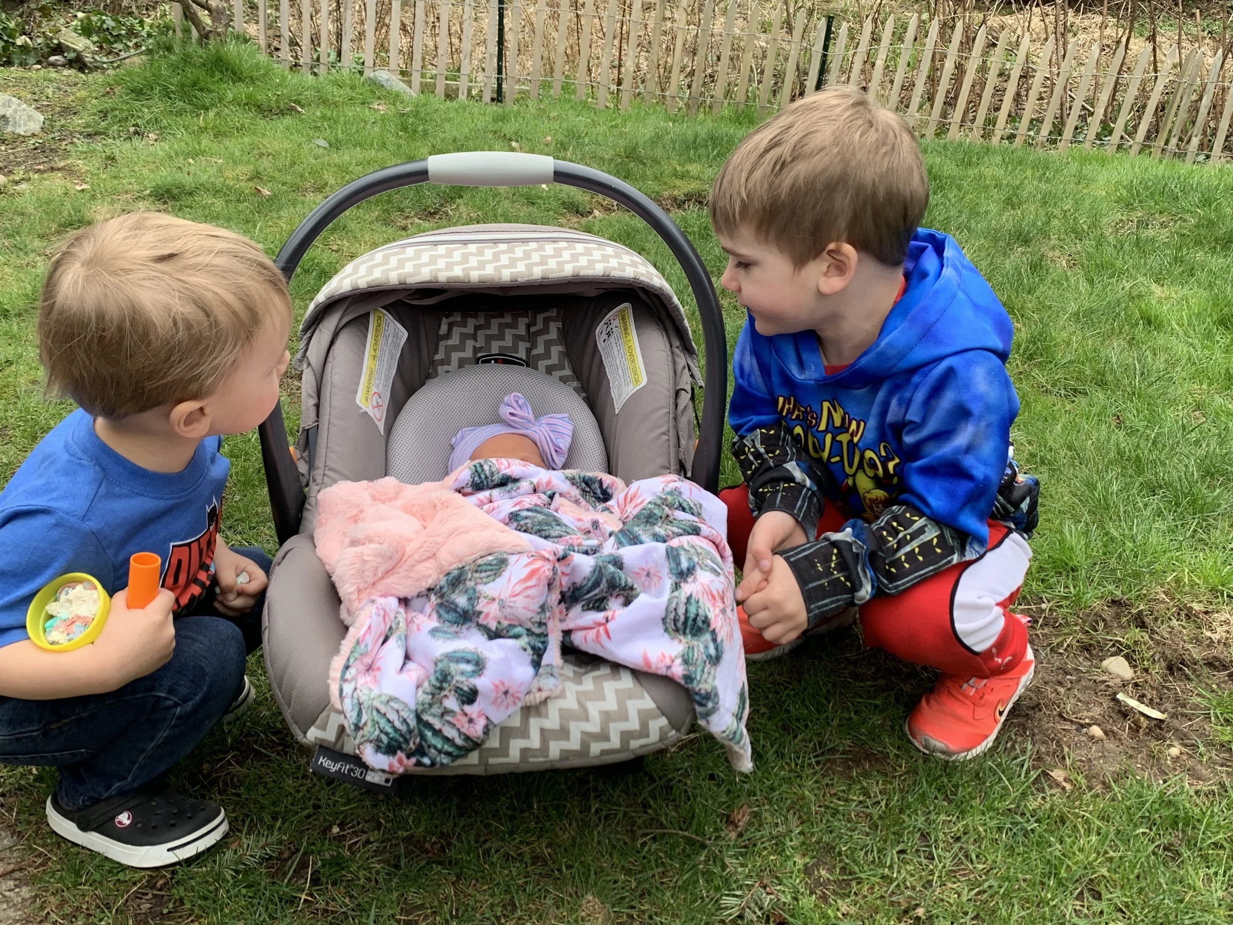 Baby LouElla Rose was born at 6:10pm on Wednesday March 9, 2022 and was 7lbs 10oz. The excitement at home began well before she came out of mommy’s tummy. All during the pregnancy, Tut was very interested in the baby and began saying that he also had a baby in his tummy named “Rosebud”. He even went as far to say he had to feed his Rosebud and that she was growing. Tut would talk to Rosebud in mommy’s tummy and used the stethoscope to check her heart. Kennan on the other hand, didn’t really have too much interest in Rosebud. While mommy was pregnant, I often served as referee to enforce the no “WWF jumping on mommy’s tummy move,” as well as breaking up brotherly fights. This can be difficult at times when you don’t see one of the boys pushing or hitting the other and then you are relying on either kid’s reports of the incident or your own assumption of the event. As a result, unfortunately, both kids get to go into the “penalty box”.